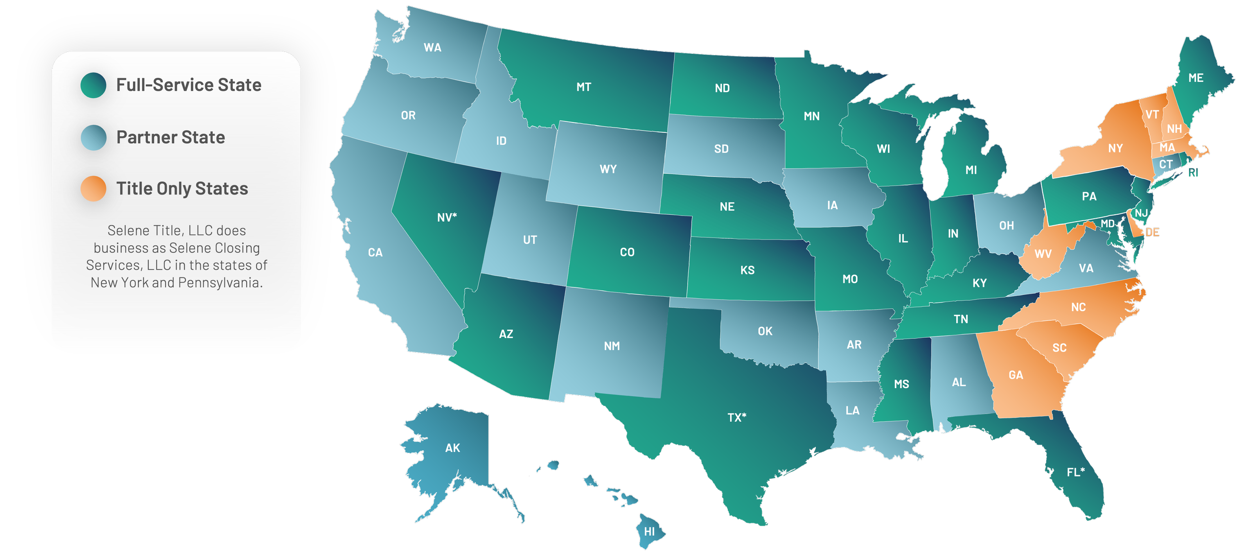 *Selene Title locations: Texas, Nevada and Florida